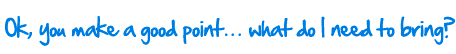 Nothing. We'll provide all the equipment, motivation, and accountability you'll need. Just bring a water bottle and a sense of adventure! Oh, and make sure NOT to come on an empty stomach. We don't want you to get light headed during our fun and energizing workouts!